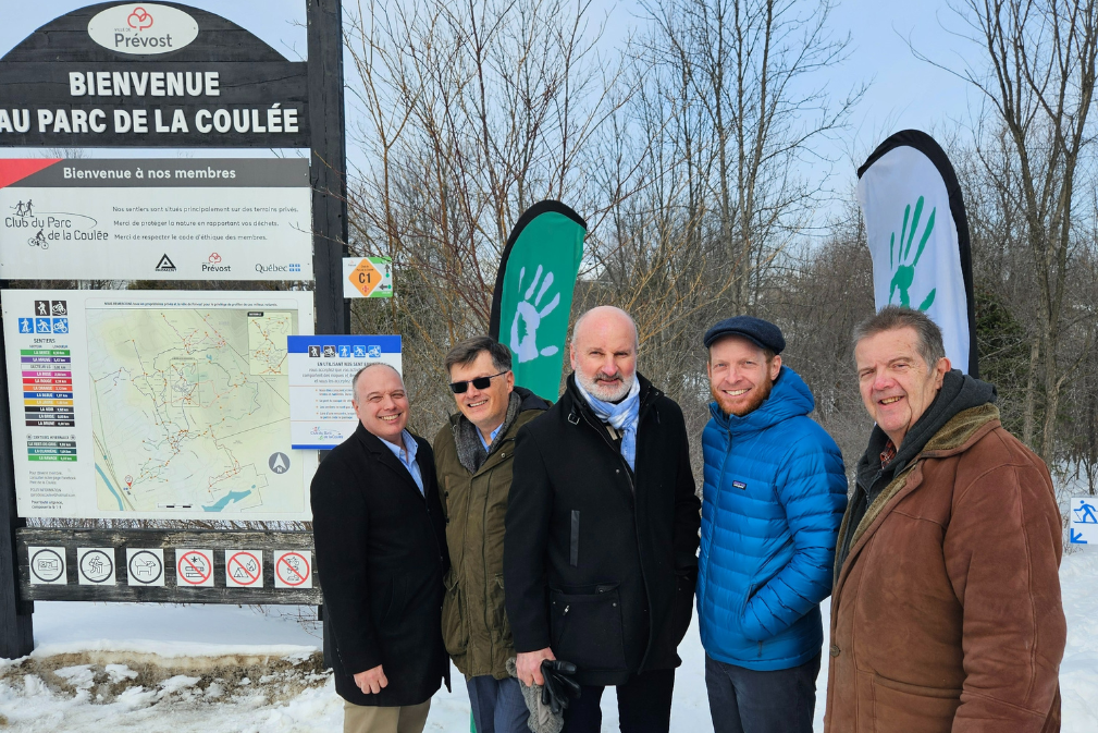 Prévost, le 16 février 2026 – En décembre dernier, la Ville de Prévost a conclu l’acquisition d’une portion de terrain situé à l’intérieur du Parc de la Coulée grâce à une importante contribution de Tricentris et le soutien financier du Club du Parc de la Coulée. Cette démarche s’inscrit dans la vision du Plan de conservation des milieux naturels de la Ville et vise à assurer la pérennité et la protection de ce secteur naturel prisé par la population.